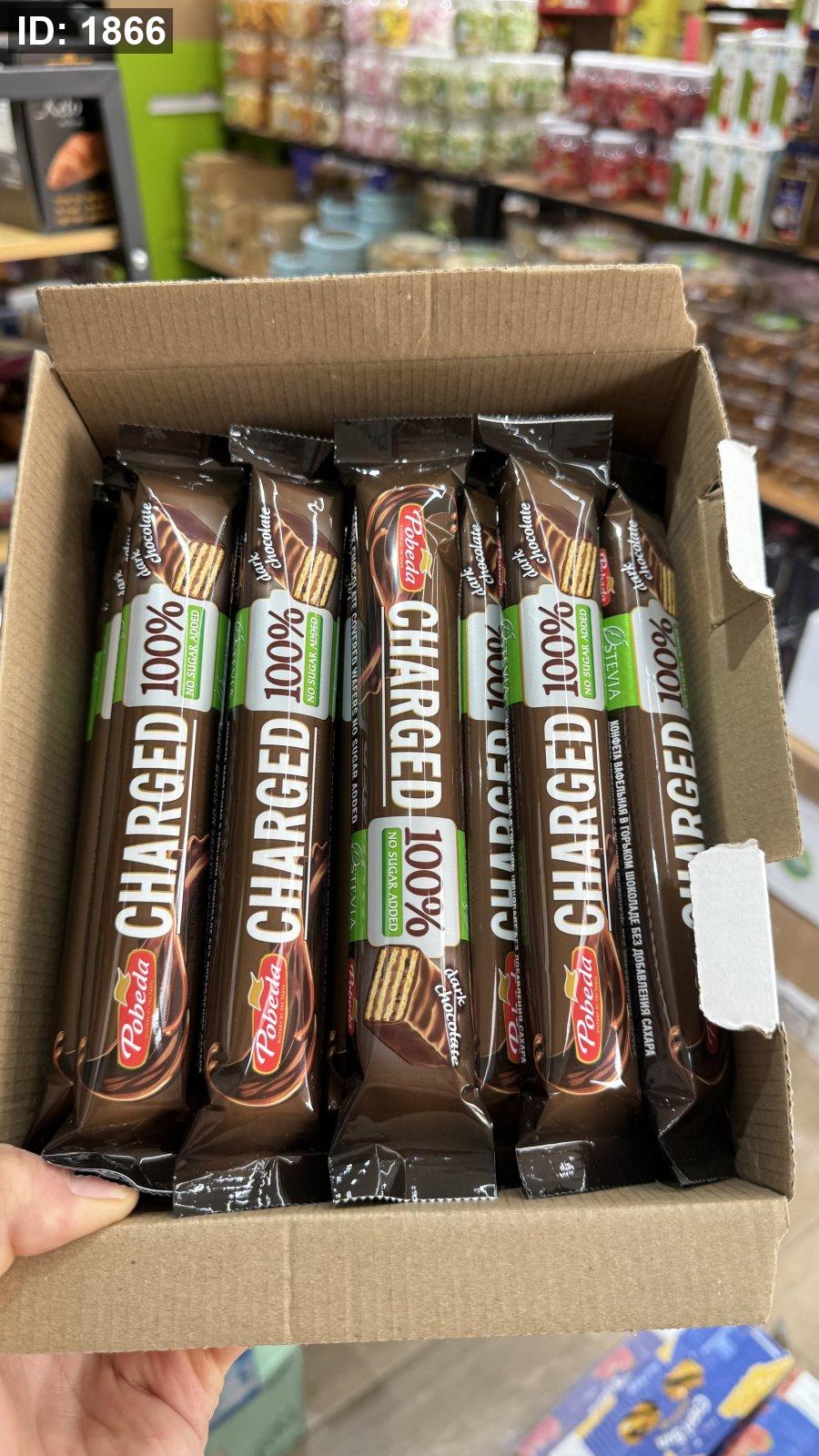علبة من ويفر بوبيدا بالشوكولاتة دارك روسية خالية من السكر فيها 20 حبة