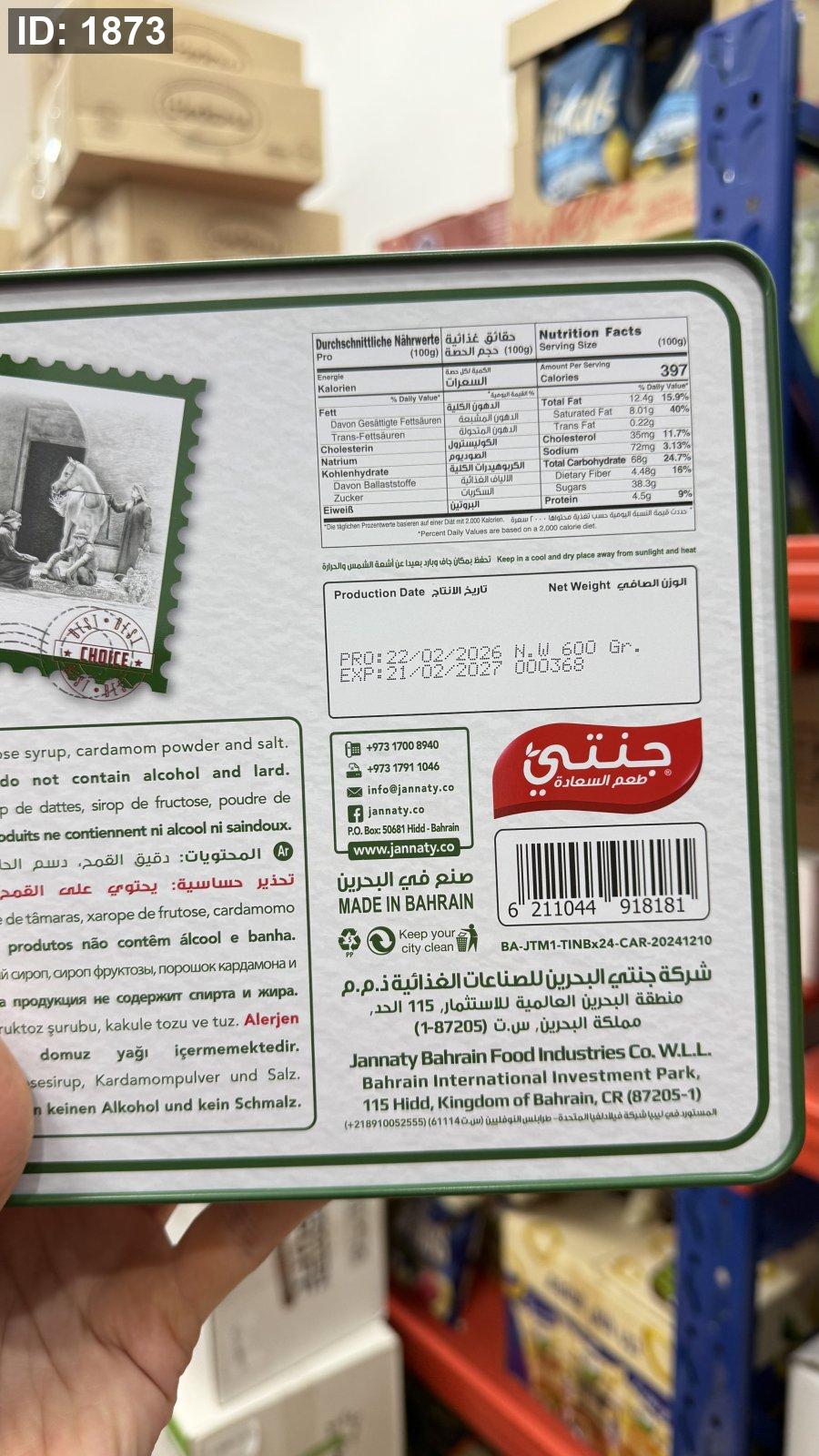 معمول جنتي التمر بالهيل دايت علبة هدايا حديد وزنه 600 غرام