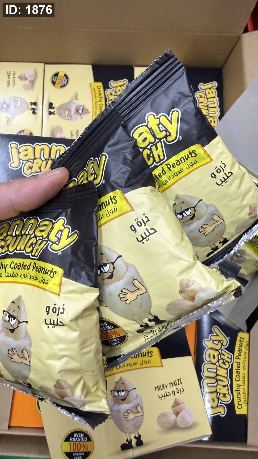 علبة = 12 كيس فول سوداني مقرمش مغطى بنكهة الذرة مخبوز بالفرن وزنه 15 غرام