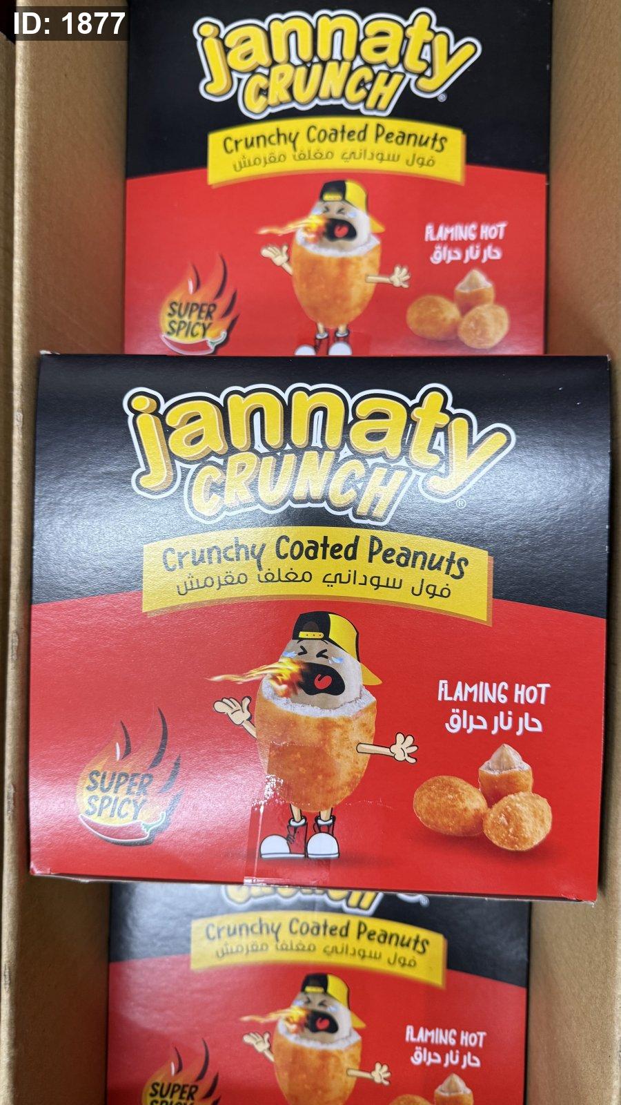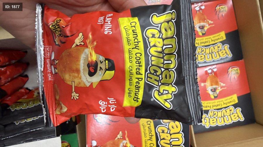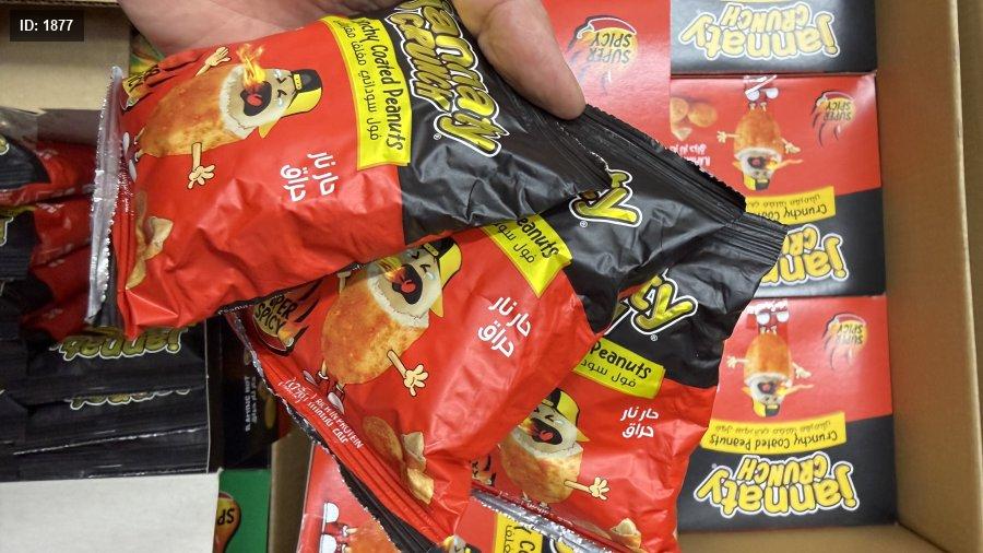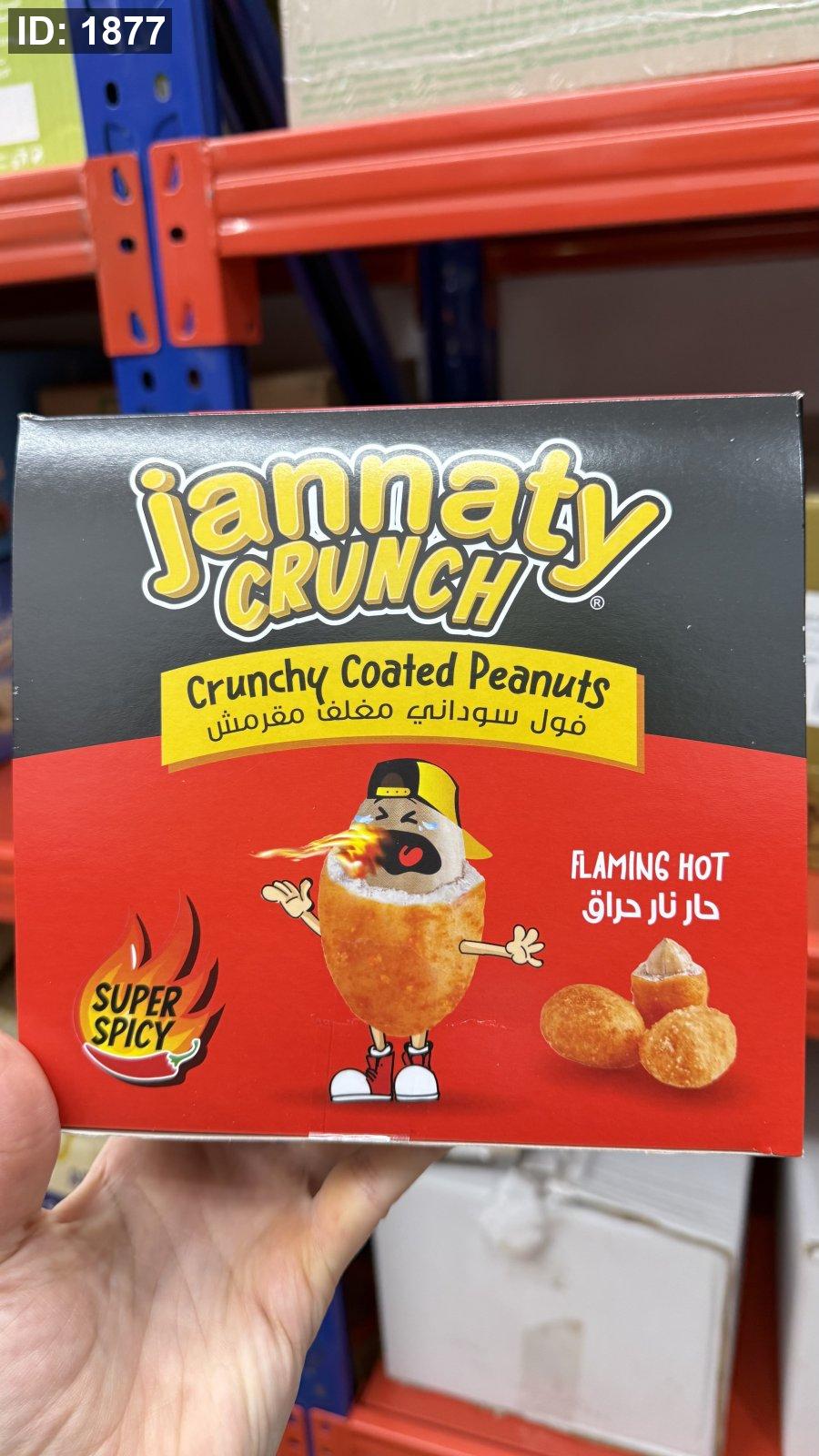 علبة = 12 كيس فول سوداني مقرمش مغطى بنكهة حار مخبوز بالفرن وزنه 15 غرام