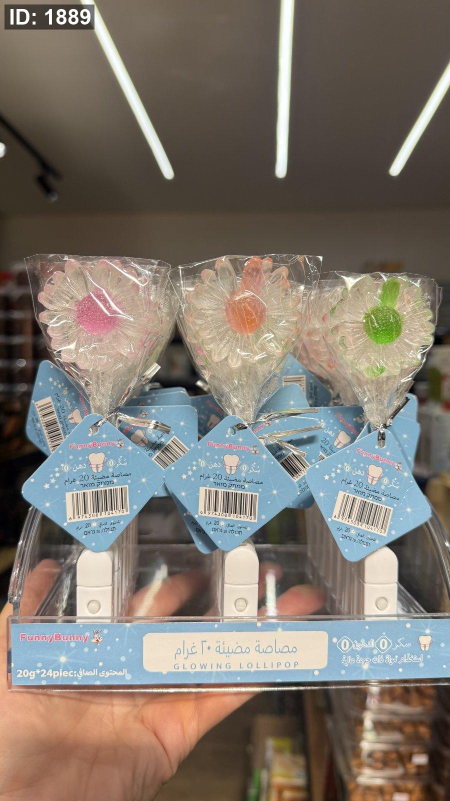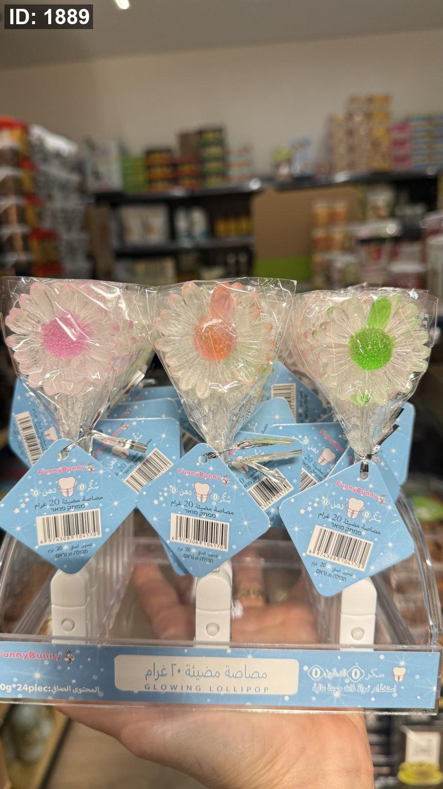 بوكس = 24 حبة من مصاص حلوى مضيئة بتصميم زهرة خالية من السكر وزنها 20غرام